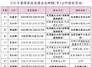 花蓮縣政府重陽節敬老禮金領取倒...