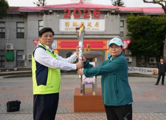 全中運聖火抵澎 林皆興接火...