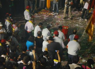 記者陳榮昌/台中報導 大甲鎮瀾宮媽祖九天八夜遶境起駕前起馬炮,傳...