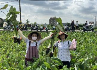 記者陳榮昌/台中報導 大甲區農會二十四日於江南田區舉辦芋頭採收體...